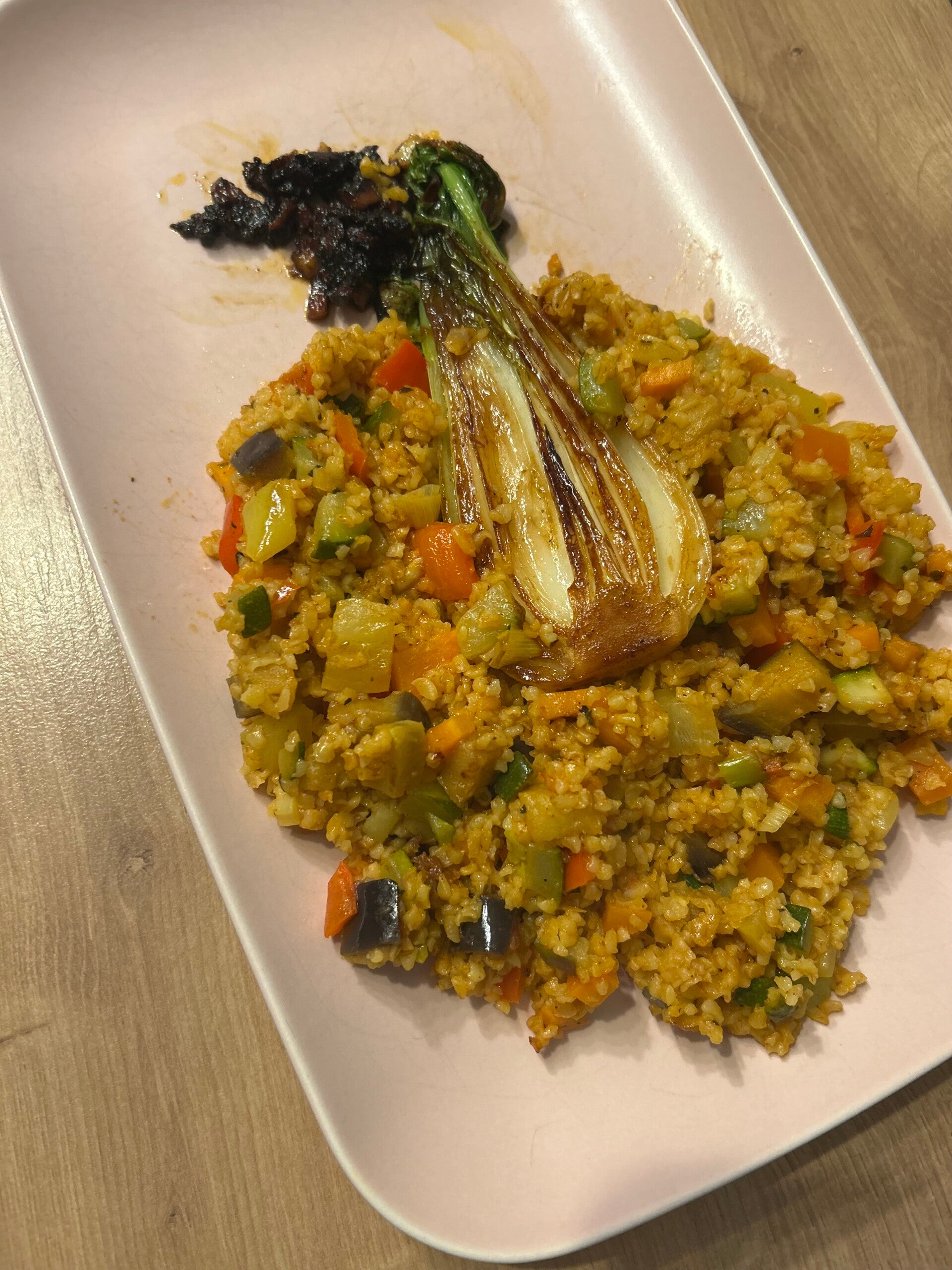 4️⃣ Zusammen mit dem Bulgur-Gemüse servieren – fertig! 😋